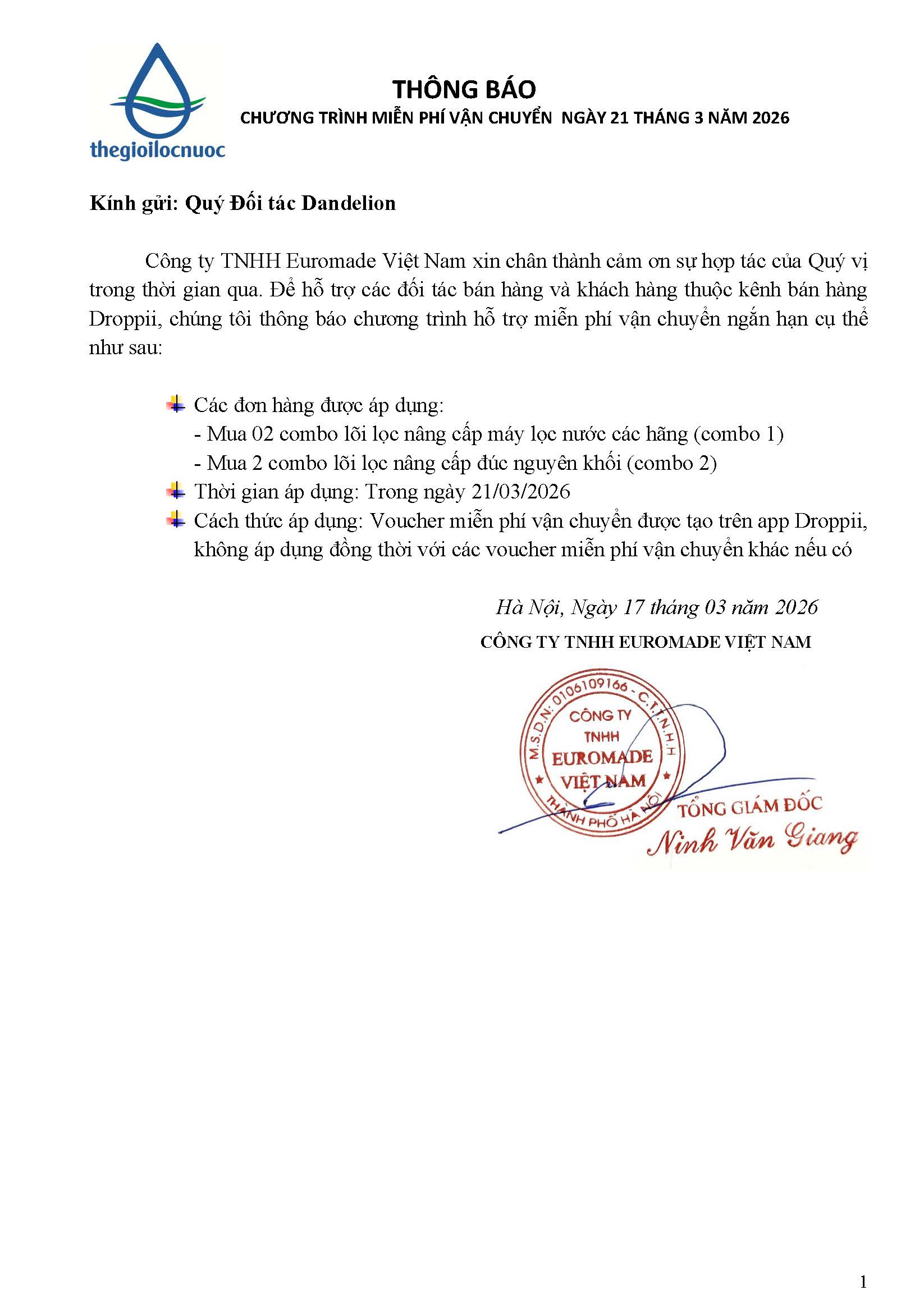 CTKM MIỄN PHÍ VẬN CHUYỂN KHI MUA 02 COMBO NÂNG CẤP 21.03.2026