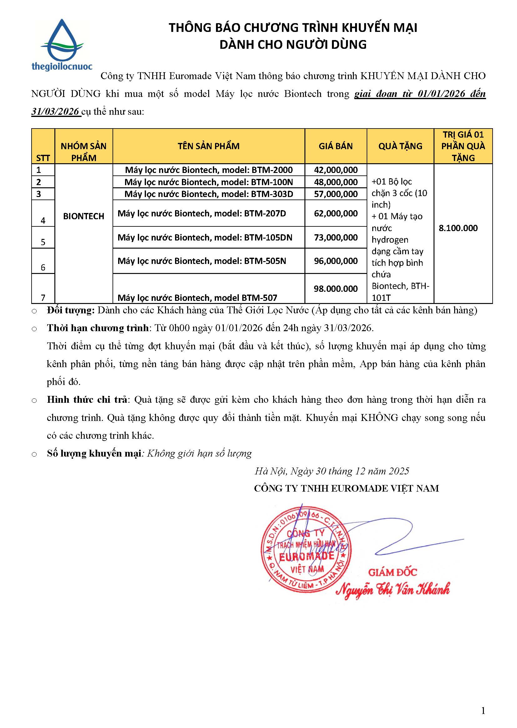 Chương trình khuyến mãiCTKM MUA MÁY PI TẶNG MÁY TẠO HYDROGEN CẦM TAY 1.1-31.3.2026 Đã đăng trên 31 Tháng 12, 2025 bởi Thế Giới Lọc Nước Thế Giới Lọc Nước CTKM MUA 2 COMBO NÂNG CẤP TẶNG 1 MÀNG RO CSM + 1 LÕI TẠO KIỀM HYDROGEN 3IN1 – 1.1-31.1.2026 CTKM MUA MÁY PI TẶNG MÁY NÓNG LẠNH WT-028S-RO 1.1-31.3.2026